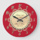 Grande Horloge Ronde Ornements Diamants Or Rouge Anniversaire de Mariag