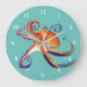 Grande Horloge Ronde Otopus vie marine aquarelle art