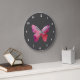 Grande Horloge Ronde Papillon blanc rose