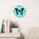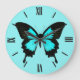Grande Horloge Ronde Papillon - bleu et noir de turquoise
