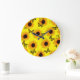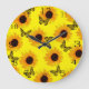 Grande Horloge Ronde Papillons Et Fleurs De Soleil Jaunes,