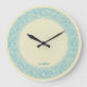 Grande Horloge Ronde Pastel Blue Et Creme Floral Damas