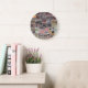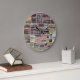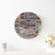 Grande Horloge Ronde Patchwork Quilt Collage Impression transparente.