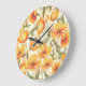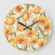 Grande Horloge Ronde Pavots jaunes : motif d'aquarelle dessiné à la mai