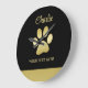 Grande Horloge Ronde Paw chien brillant or sur arrière - plan noir