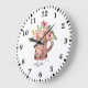 Grande Horloge Ronde Pêche rustique et aquarelle mauve Florale