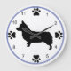 Une horloge amoureux des chiens avec la silhouette d'un Pembroke Welsh Corgi, avec des empreintes de pattes marquant les quartiers.