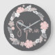 Grande Horloge Ronde Personalized Floral Name Pink