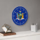 Here's a New York State Flag Design presented on a clock face. Easily personalize this clock with your text.