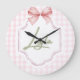 Grande Horloge Ronde Personnalisée Layla Baby Girl Nursery Bow&En vichy