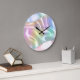Grande Horloge Ronde Personnaliser le nom Script violet, vague iridesce