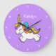 Grande Horloge Ronde Personnalized Girls Purple Unicorn