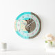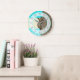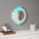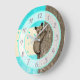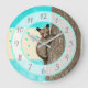 Little baby bear cub climbing a tree in teal and tan children's or baby nursery clock