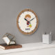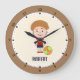 Horloge murale avec petit garçon mignon et boule sur arrière - plan beige