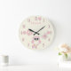 Grande Horloge Ronde Petite chouette rose et crème avec un nom