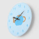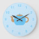 Grande Horloge Ronde Photo de théière bleue sur Blue Stripes.