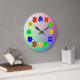 La conception est vibrante et ludique, présentant douze (12) champs de typographie personnalisables avec des chiffres arabes, accompagnés de pièces de puzzle colorées rouge vif, bleu, vert et jaune servant de repères horaires, le tout sur un fond enchanteur de teintes pastel arc-en-ciel douces. Les douze pièces de puzzle peuvent également être personnalisées, vous permettant de les remplacer par des photos personnelles ou des œuvres d'art pour enfants de votre choix.