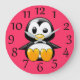 Grande Horloge Ronde Pingouin de Pink Wall Clock