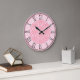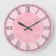 Grande Horloge Ronde Pink kangaroo paw & heart damask wall clock