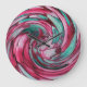 gorgeous shades of PINKS and TEAL/AQUA on this wall clock. if you look close it rescuiva Dolphin swirling on the bottom and bird ? eagle... parrot ? on the top swirl.
