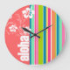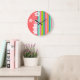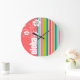 Grande Horloge Ronde Pink saumon & Seafoam Vert rayé : Aloha