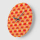 Grande Horloge Ronde Pixel Mushroom Pattern - Orange Background