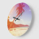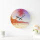 Grande Horloge Ronde Plage, cocotier, lit en bois.