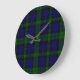 Grande Horloge Ronde Plaid noir de vert bleu de tartan de clan de