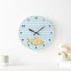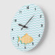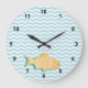 Grande Horloge Ronde Poisson d'or sur chevron bleu aqua