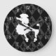Cette horloge amusante et rétro présente un contour de caniche dans un jeu de couleurs noir et blanc.