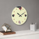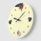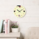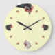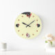 Une horloge frivole pour les amateurs de volaille avec quatre portraits de poulet - deux têtes de poules noires assorties gauche et droite, une poule noire plus grande regardant du haut, et une poule sussex blanche au bas. Les heures intermédiaires sont de petits oeufs. Un peu d'humour pour la cuisine :) Il y a des versions séparées pour la taille et la forme carré différentes. Cette version a un arrière - plan jaune pâle qui peut être modifié à l'aide du bouton personnaliser, puis modifier.