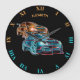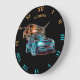 Grande Horloge Ronde Psychedelic Futuristic Sport Cars Glowing Neon