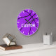 Purple Basketball Home Décor Custom Team Name Large Wall Clock: An awesome home or office decor piece for basketball players, coaches or fans with purple team colors. Type your team name or any other text in the custom text box to personalize it. Donc, vous pouvez choisir entre le texte de la placeholder et le leave it blank if you just want a simple purple basketball design. These would look great in the basketball coach's office or athltics fieldhouse !