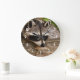 Grande Horloge Ronde Raccoon mignon reposant sur un journal