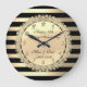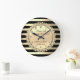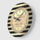 Grande Horloge Ronde Rayures dorées,Fleurs 50e anniversaire de mariage