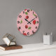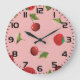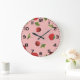 Grande Horloge Ronde Red Strawberry and Cherry Pattern Pink Fruit