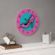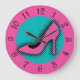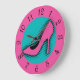 Pour des amants de mode, cette rétro horloge de style est imprimée avec une chaussure de talon haut dans un modèle de couleurs de rose et d'aqua.