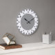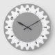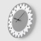 Une horloge au design original et attrayant. 24 cogs autour du bord avec une échelle d'une heure et d'une minute avec de beaux chiffres clairs et élégants autour du bord intérieur. Disponible dans une variété de couleurs différentes. Cependant, la couleur arrière - plan peut également être customisée.