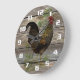 Grande Horloge Ronde Rooster vintage sur de vieilles planches en bois C
