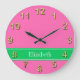 Grande Horloge Ronde Rose chaud solide #2 Emerald Green Rbn Nom Monogra