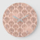 Grande Horloge Ronde Rose Gold Blush Rose Moderne Glamour Damassé