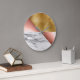 Grande Horloge Ronde Rose Gold Carrara Marbre Gris Géométrie métallique