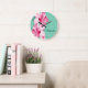 Grande Horloge Ronde Rose Hibiscus Tropical