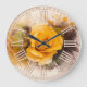 Grande Horloge Ronde Rose jaune unique aquarelle