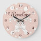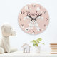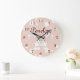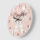 Grande Horloge Ronde Rose Pâle Ruban Blanc Cassé et Lapin Jumeau Mignon
