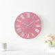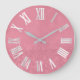 Grande Horloge Ronde Rose Pink Gray Silver Glitter Metal Roman Numers