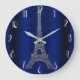 Grande Horloge Ronde Royal Blue & Silver Eiffel Tower Paris Modern Glam