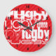 Grande Horloge Ronde Rugby ; Grandes rayures rouges écarlates
