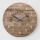 Horloge familiale avec un arrière - plan en bois rustique pour votre décor de cuisine de style ferme. Personnalisez avec le nom de famille et l'année établie pour une horloge murale ferme unique.