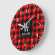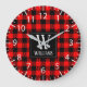 Grande Horloge Ronde Rustic Modern Red Buffalo Plaid Checkered Monogram